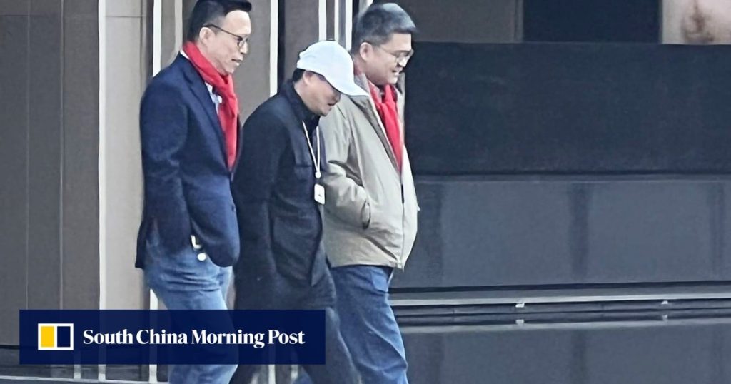 Jack Ma, wearing a white cap, is flanked by Ant Group chairman Eric Jing Xiandong (left) and CEO Cyril Han Xinyi during his walk around the Chinese fintech giant’s campus in Hangzhou, capital of eastern Zhejiang province. Photo: Handout.