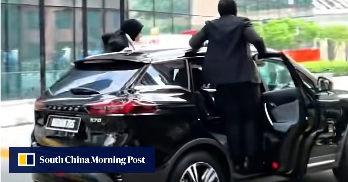 The widely shared clip shows the pair – dressed in formal black suits and headscarves – jogging after a sport utility vehicle carrying foreign delegates before each opening a rear door, stepping onto the footboard and taking position with the doors ajar as the vehicle continues moving forward.