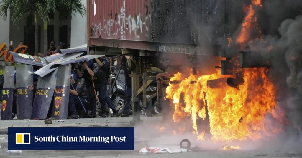 During demonstrations that stretched from Luneta Park in Manila to the EDSA People Power Monument in Quezon City, violent outbursts emerged in pockets of the capital, such as on the Ayala Bridge and Mendiola, where masked individuals torched a truck, set motorcycles on fire and pelted rocks and other improvised weapons in clashes with law enforcement officers.