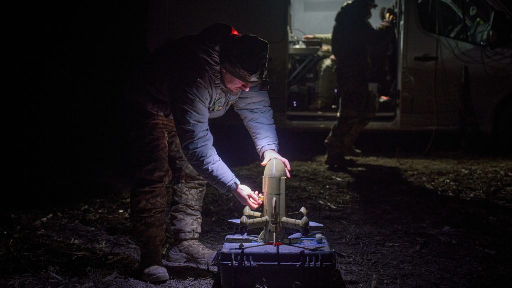 A Ukrainian soldier prepares an interceptor drone during Russia’s aerial attack in an undisclosed location in Ukraine, on Dec. 13, 2025. (AP Photo/Efrem Lukatsky)