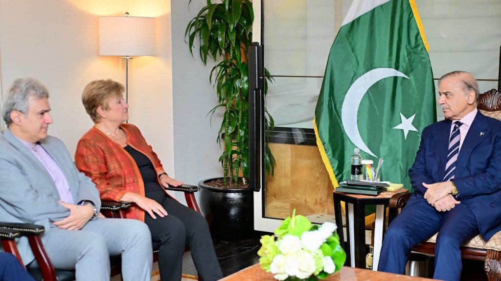 Prime Minister Shehbaz Sharif on Wednesday met International Monetary Fund (IMF) Managing Director Kristalina Georgieva and World Bank President Ajay Banga on the sidelines of the 80th United Nations General Assembly session in New York to discuss Pakistan’s economic reforms and future cooperation.