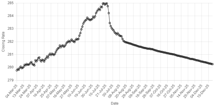 On Thursday, the local unit closed at 280.26.