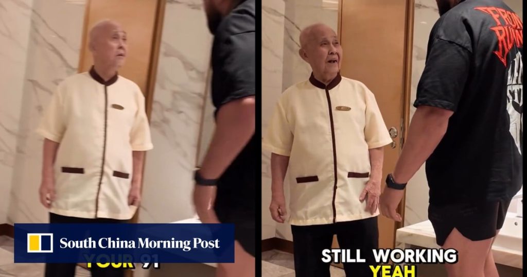 A viral video of an interaction between a fitness influencer and an elderly toilet cleaner in Singapore has sparked discourse on the city state’s work culture for seniors.