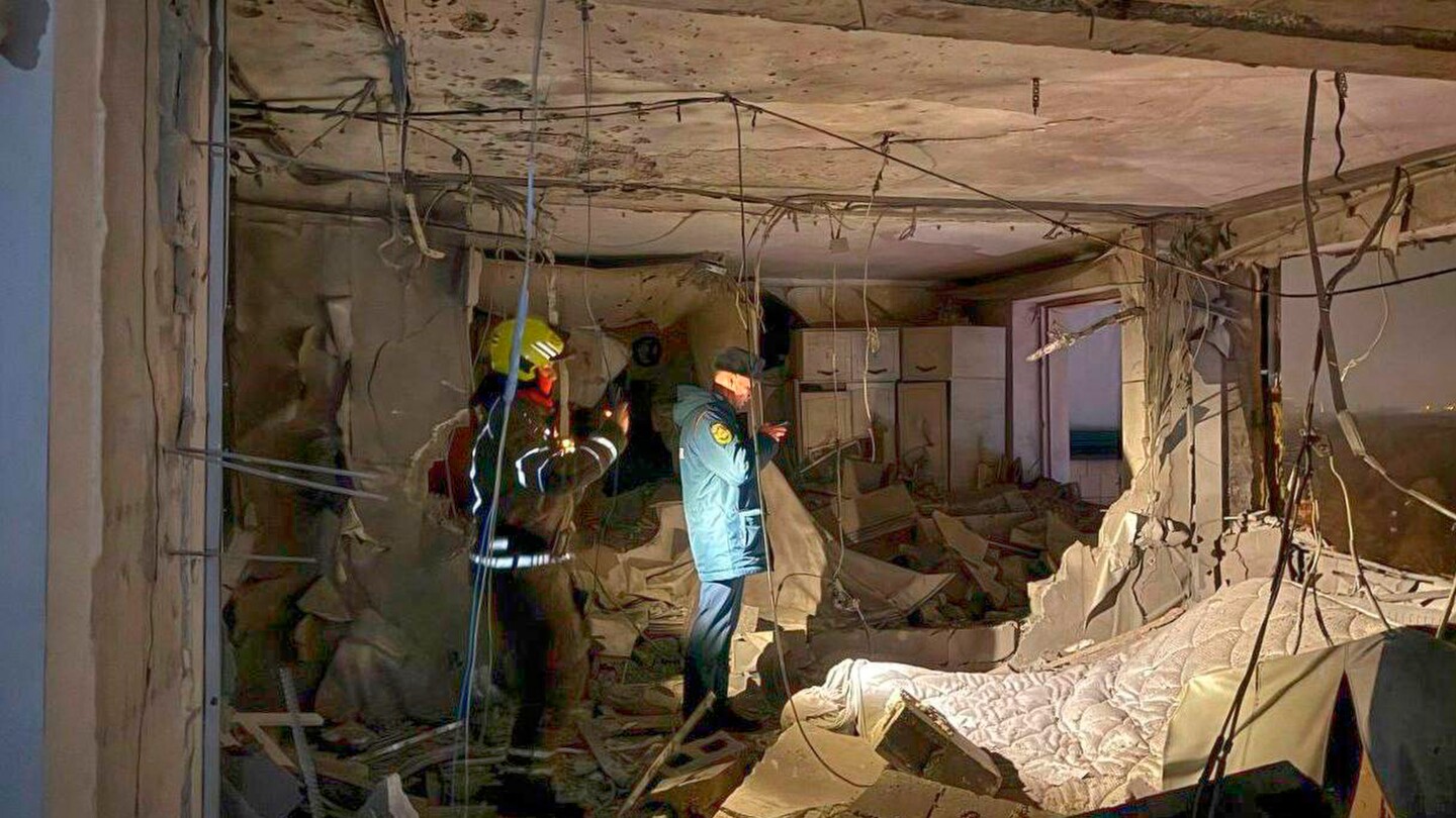 One drone hit an apartment building in Krasnogorsk on Moscow’s northwestern edge, injuring five people, including a child, according to Andrei Vorobyov, the governor of the Moscow region.